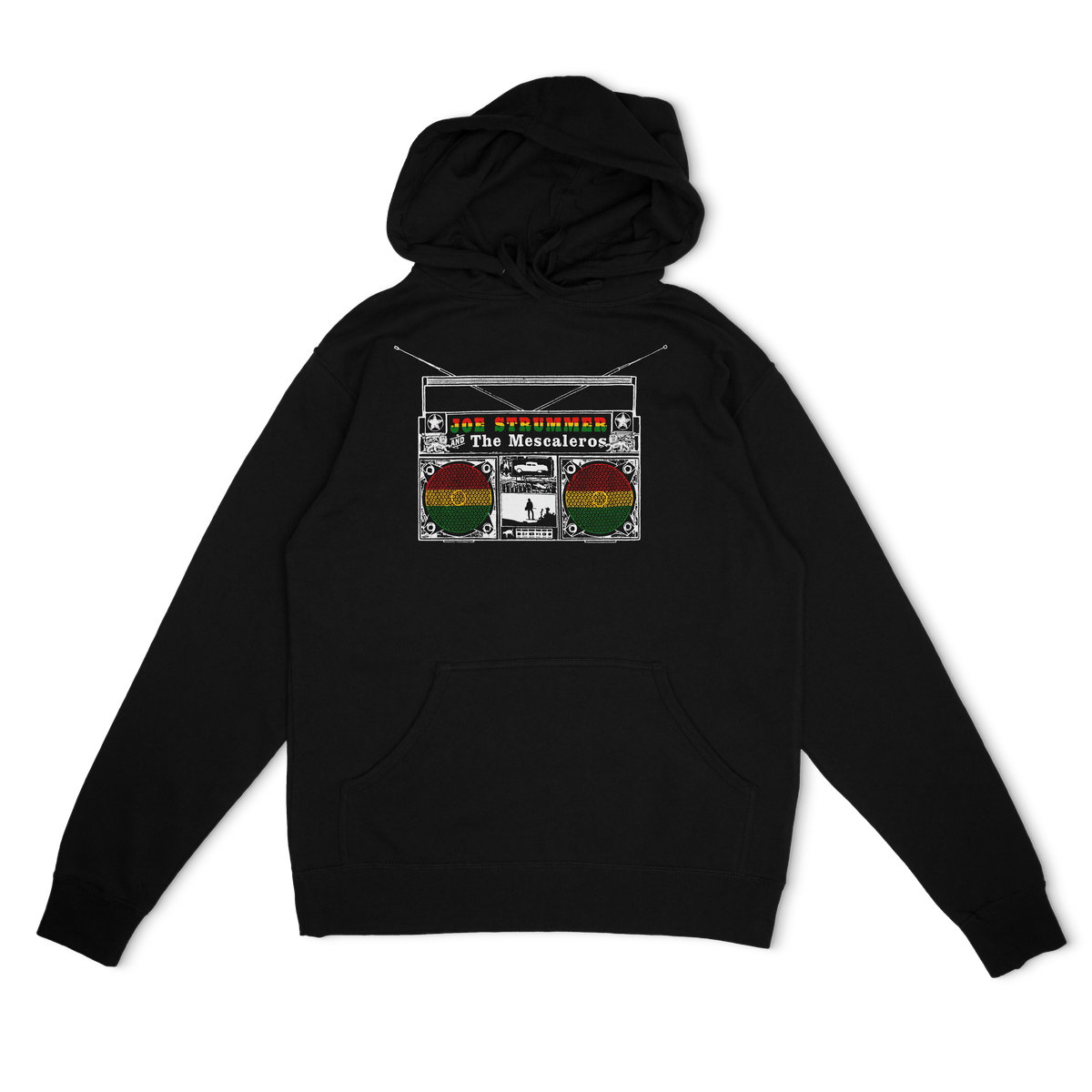 The "Blaster Hoodie" is inspired by an early Joe Strummer and the Mescaleros Tour T-Shirt design with the artwork available as a hoodie for the first time.